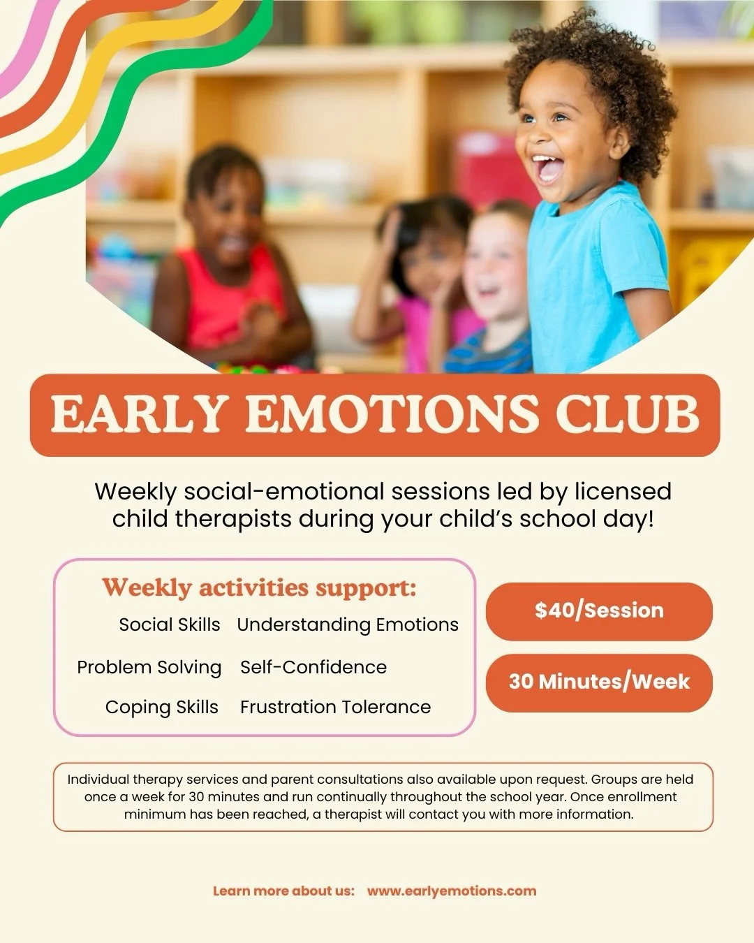 At Early Emotions, we believe the best way to support a child’s mental health is by supporting the the child’s entire system. Our team of licensed therapists and registered play therapists specializes in early childhood mental health for children from birth through 6-years-old as well as provide support for parents and caregivers.
